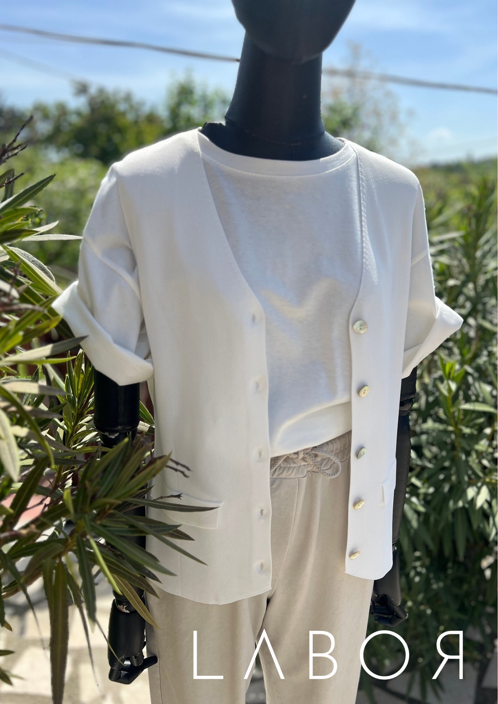 Könnyű anyagú végig gombos mellény. Melegebb napokon önmagában vagy egy pólóval, inggel ajánljuk.
